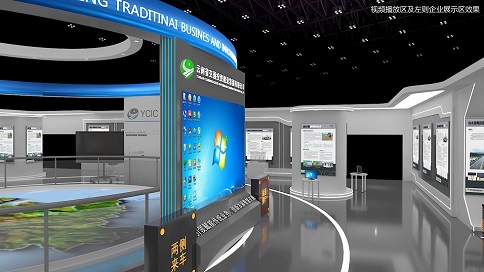 設(shè)計構(gòu)思:展廳創(chuàng)想遵循“未來交通、科技創(chuàng)新、環(huán)保安全”的原則,力求做到體現(xiàn)國際化、現(xiàn)代化為主創(chuàng)思路。借助原有建筑及沙盤創(chuàng)意設(shè)計使整個展廳 “協(xié)調(diào)統(tǒng)一、厚重大氣”。整體特裝以爵士白、火山灰、科技藍為主色調(diào)。時空隧道、高速公路概念創(chuàng)意緊貼云南交投集團的定位。突出展廳科技感現(xiàn)代化,展廳采用LED視頻播放、超薄燈箱展板、多媒體電視、發(fā)光字、企業(yè)展板展示、實物展示、立體雕刻字等高新科技技術(shù)應(yīng)用相結(jié)合。